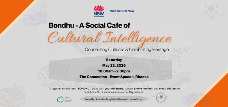 Australian-Bangladeshi Women in Leadership Incorporated (ABWLI) is a dynamic network dedicated to empower Australian women with Bangladeshi heritage and their families by facilitating education and mental wellbeing initiatives that are culturally inclusive, community-focused, and support the global priorities outlined in the UN Sustainable Development Goals—fostering wellbeing, knowledge, gender equity, and reduced disparities within multicultural communities.